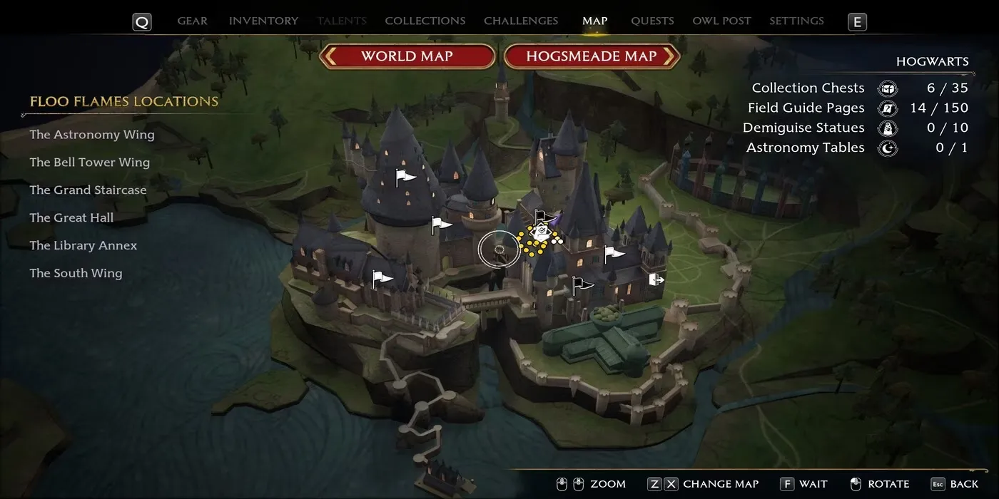 Первым делом игрокам нужно будет открыть карту в своем путеводителе по Хогвартсу. Открыв экран карты, игроки заметят, что в правой нижней части экрана есть легенда, в которой перечислены команды ввода.