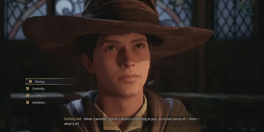 После того как игроки ответят на первый вопрос, шляпа предложит им выбрать одно из четырех качеств, каждое из которых привязано к определенному дому. "Смелость" - это Гриффиндор, "Любопытство" - Рейвенкло, "Преданность" - Хаффлпафф, а "Амбиции" - Слизерин. Однако, как уже говорилось выше, этот выбор также не имеет особого значения, поскольку игроки смогут отменить предложение шляпы, если захотят.