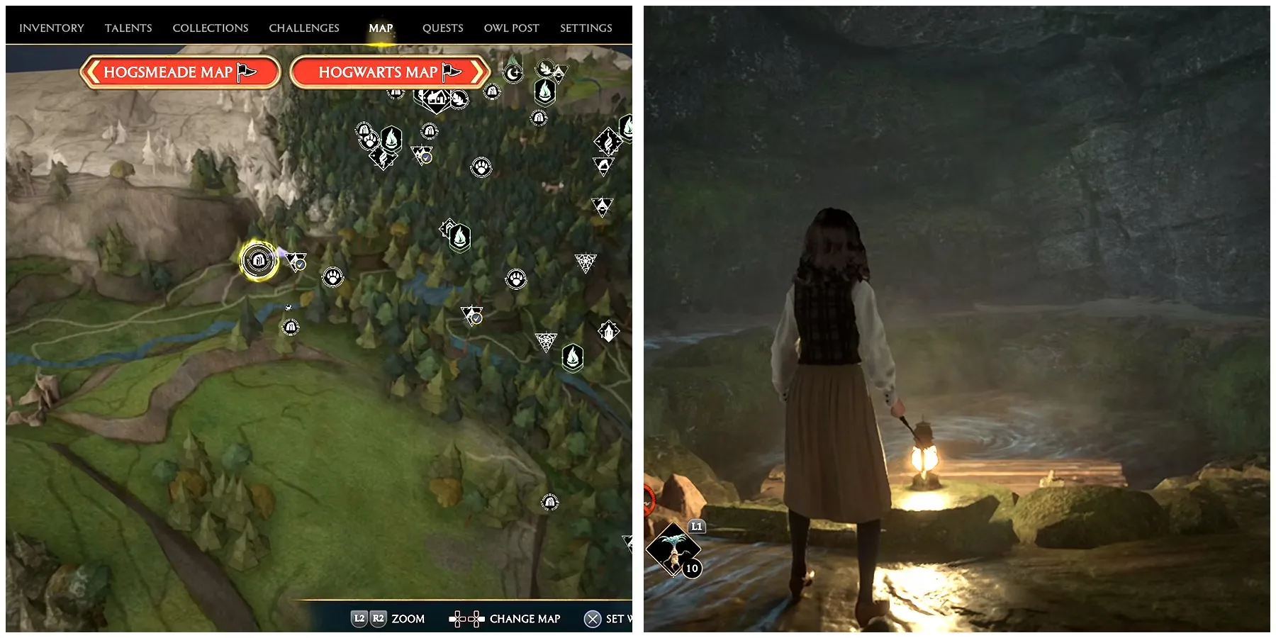 Хранилища сокровищ похожи на исследование гробниц в Hogwarts Legacy, только проще. Обычно за пределами пещеры игроков ждет небольшая головоломка, чтобы открыть ее, в других случаях головоломка находится внутри пещеры. К счастью, в северной части Хогвартса для прохождения сокровищниц не нужно использовать различные заклинания.