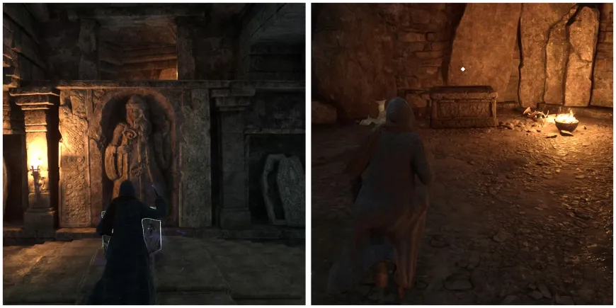 Четвертое хранилище сокровищ в Hogwarts Legacy находится рядом с посадочной платформой к северу от путевой точки западного поместья Cape. По прибытии используйте Accio, чтобы потянуть за рычаг рядом с дверью хранилища и войти в пещеру. Внутри пещеры игрокам необходимо победить Инфериуса, прежде чем продолжить путь.