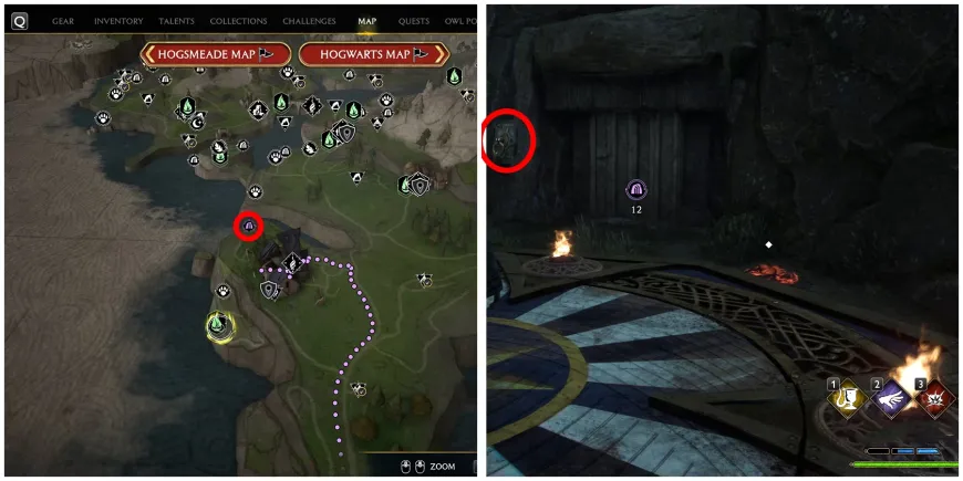 Внутри пещеры находится головоломка, для решения которой необходимо использовать Wingardium Leviosa, чтобы заставить куб левитировать и поместить его в правильное положение со стрелкой, направленной вниз. Как только головоломка будет решена, дверь сокровищницы откроется, и игроки смогут получить свою награду.