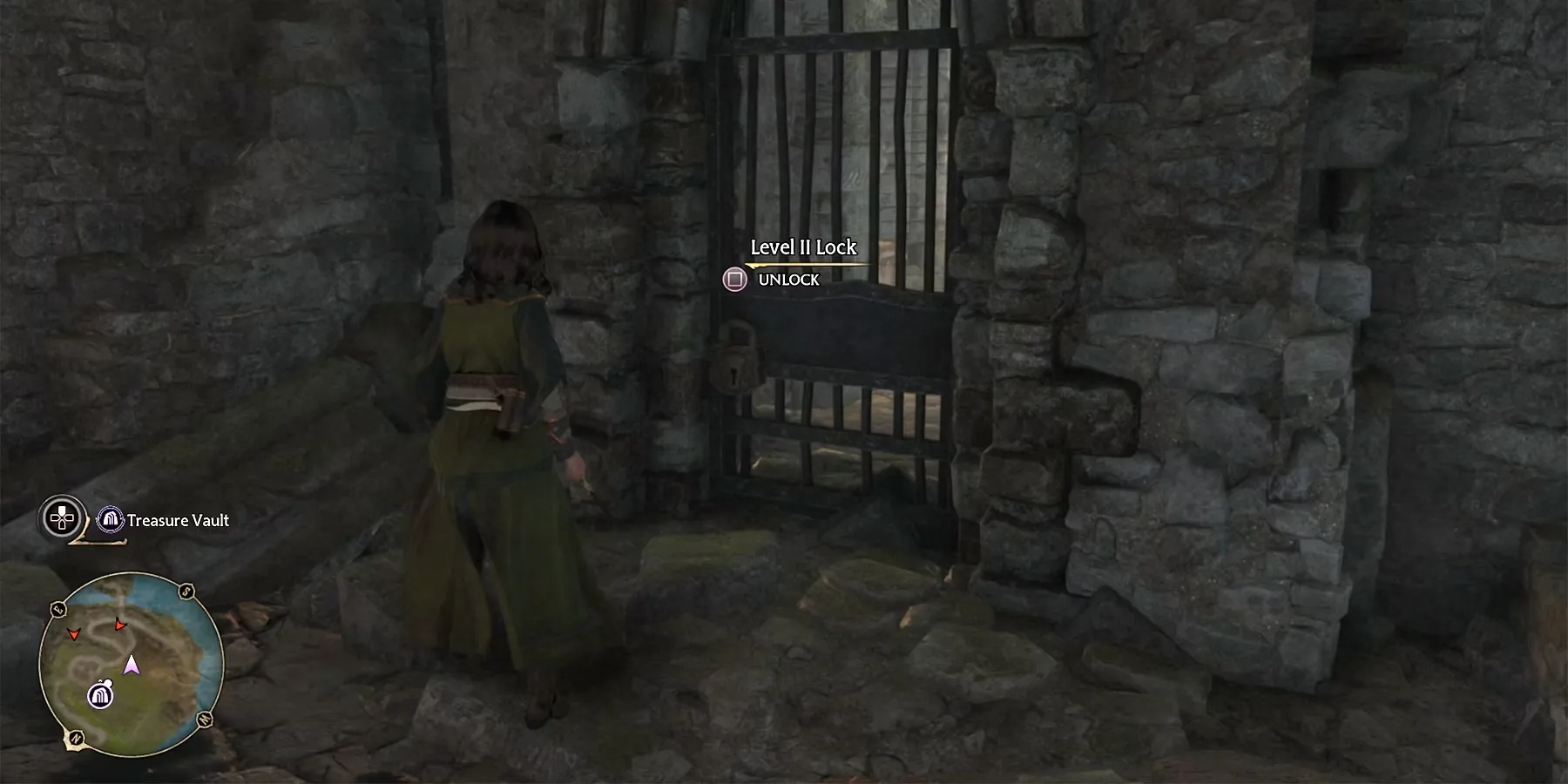 Спустившись по лестнице, вы увидите запертую дверь, для которой требуется Алохомора II. Чтобы выучить заклинание, герои должны собрать девять статуэток Демигиза в Hogwarts Legacy и доставить их обратно Глэдвину Муну. Войдите в открывшуюся комнату и откройте сундук с сокровищами.