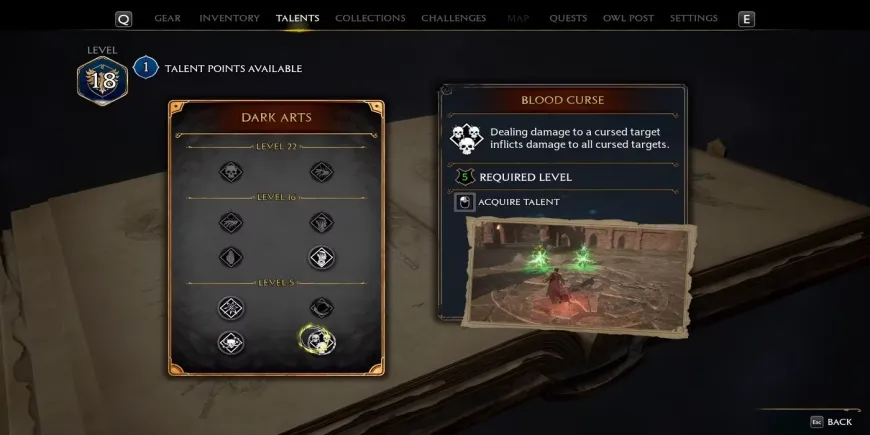 Играя за темную ведьму или волшебника, игроки смогут улучшить некоторые из своих заклинаний, чтобы они имели дополнительные эффекты. Эти таланты позволяют игрокам усилить некоторые из своих наступательных заклинаний или заклинаний контроля толпы, включая Непростительные проклятия, которые используют остальные части дерева, усиливая действие проклятий. Если игроки намерены строить своего персонажа вокруг темной магии и проклятий, на эти таланты стоит обратить внимание.