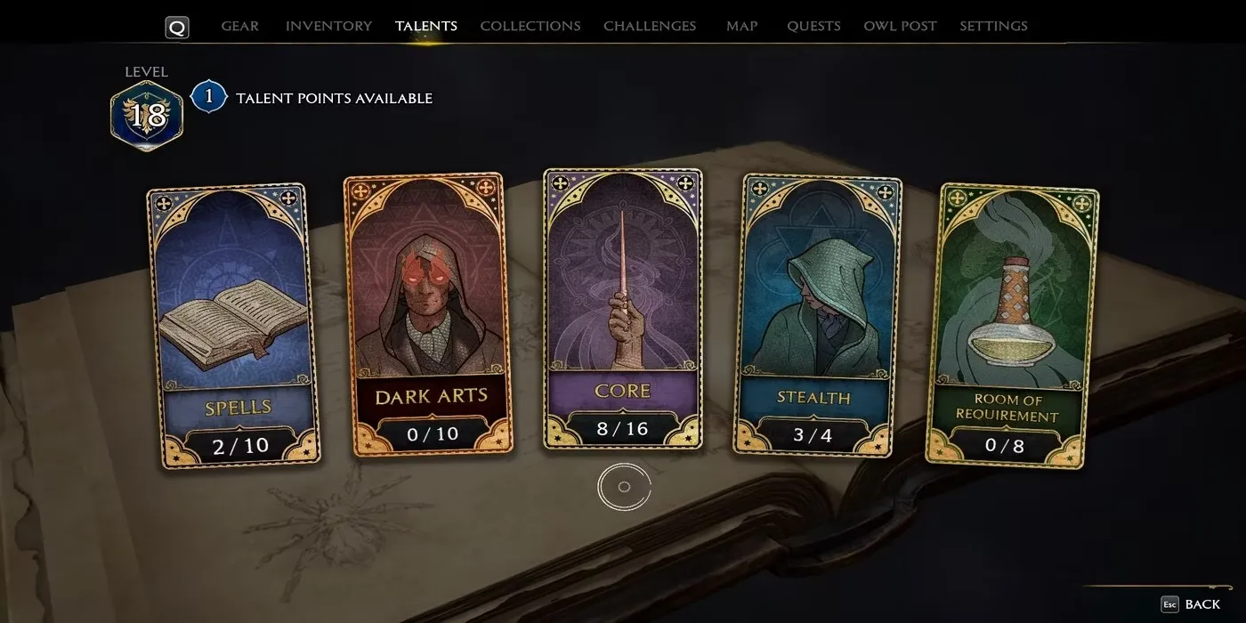 Очки талантов приобретаются за повышение уровня в землях вокруг Хогвартса. При каждом повышении уровня после 5-го игроки будут получать очки талантов, которые можно потратить на своего персонажа, настраивая его способности.