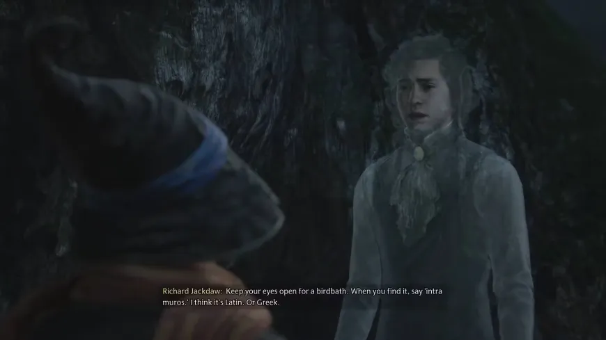 Встретив призрак Ричарда Джекдоу и договорившись встретиться в Запретном лесу, игроки отправляются к месту его смерти в надежде найти потерянные страницы, карта которых привела его к гибели. Он объясняет пароль, который нужно произнести, чтобы открыть потайной ход возле птичьей купальни, и ведет игроков через Запретный лес к ней, одновременно объясняя ориентиры, по которым можно найти эту купальню.