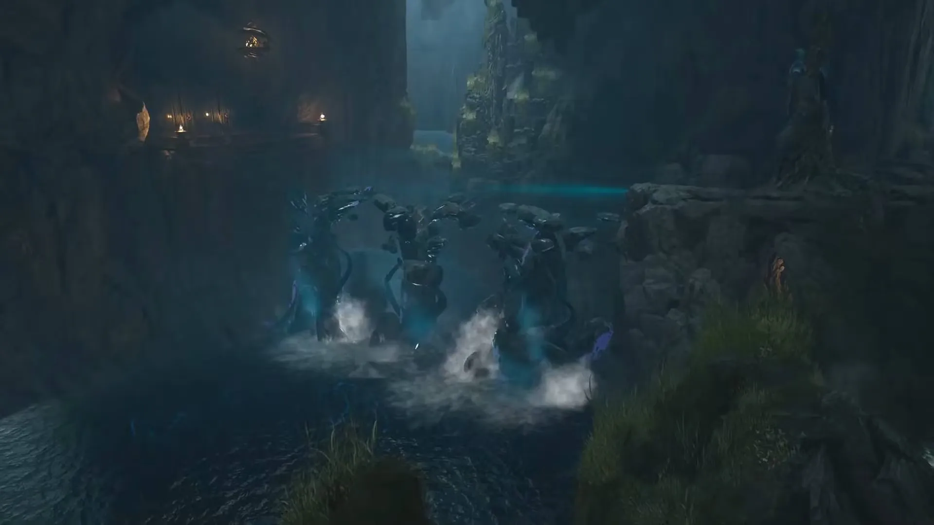 Победив пауков, игроки должны направиться к склону, ведущему к воротам, и спуститься по тропинке рядом с ними, чтобы найти сундук и обнаружить еще одну из тех рун, которые были найдены ранее. Вернитесь вверх по тропинке, чтобы персонаж игрока оказался на вершине тропинки у склона и смог увидеть руну. Еще одна руна находится над тропинкой внизу возле ворот и еще одна слева. Ударьте по всем трем с помощью Basic Cast, чтобы завершить строительство моста и открыть путь вперед.
