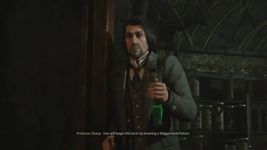 Спустившись в класс зелий, игроки познакомятся с профессором Шарпом, который преподает зелья. В начале занятия он просит учеников приготовить зелье Виггенвельда, которое можно использовать для лечения травм. Следуйте подсказкам на экране, чтобы приготовить зелье; затем профессор Шарп предлагает вам научиться готовить зелье Эдур. Направляйтесь в кабинет Шарпа, где вас прервет Гаррет Уизли.