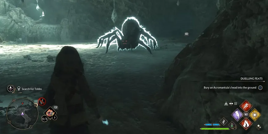 Эльф объяснит, что его старый друг, Тоббс, заперт в пещере, кишащей пауками, и не может выбраться из-за своего жестокого хозяина. В связи с этим Дик предлагает игрокам опробовать обновленное снаряжение в Hogwarts Legacy и заодно проведать Тоббса. После принятия просьбы начнется выполнение квеста «Бедственное положение домового эльфа».