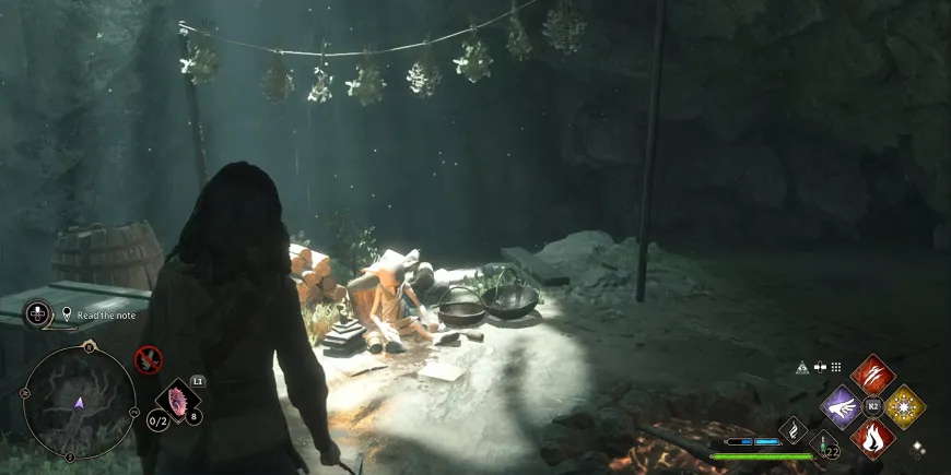 - Поверните направо и сожгите паутину, преграждающую путь, используя любое огненное заклинание в Hogwarts Legacy.