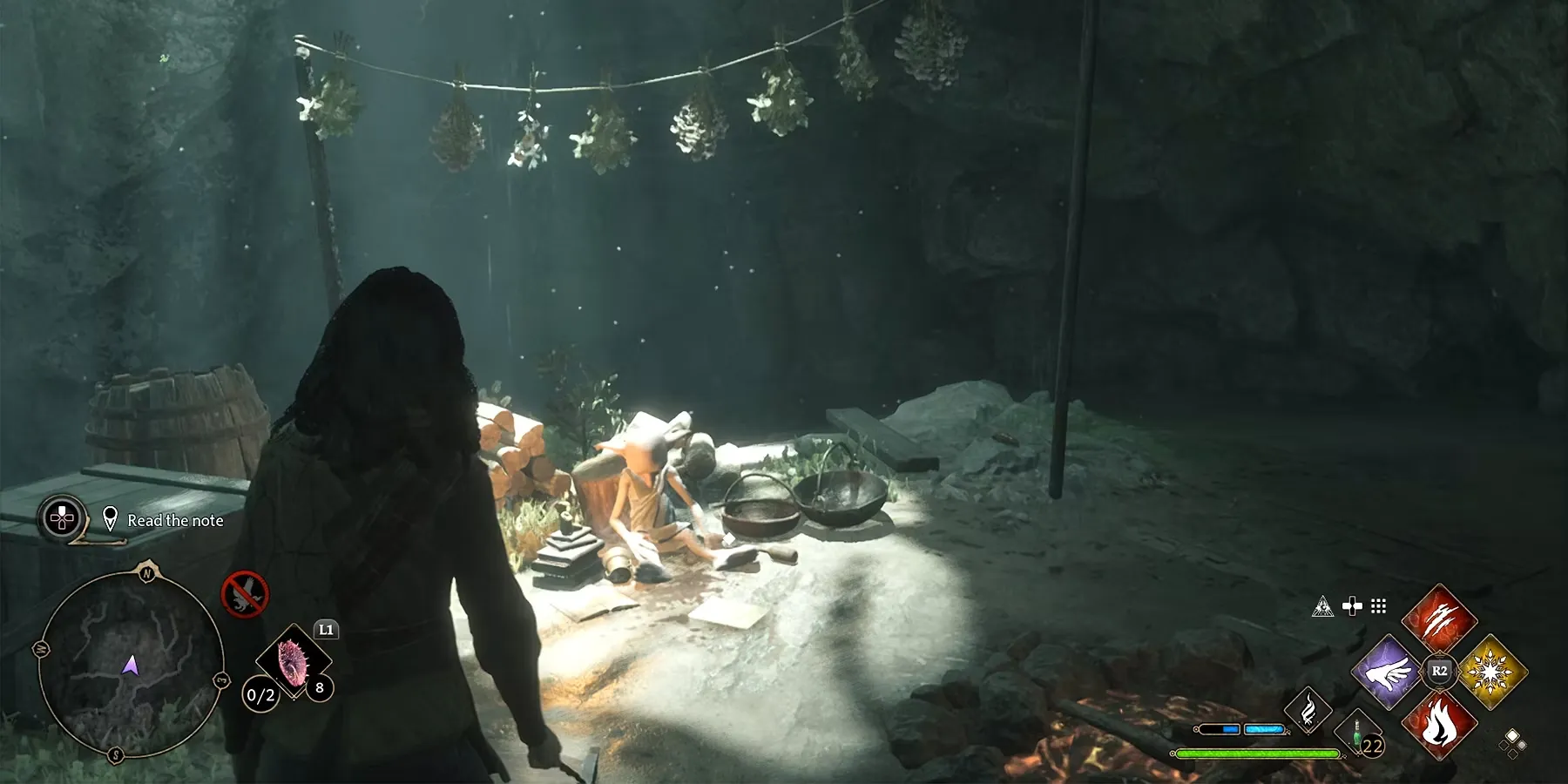 Эльф объяснит, что его старый друг, Тоббс, заперт в пещере, кишащей пауками, и не может выбраться из-за своего жестокого хозяина. В связи с этим Дик предлагает игрокам опробовать обновленное снаряжение в Hogwarts Legacy и заодно проведать Тоббса. После принятия просьбы начнется выполнение квеста «Бедственное положение домового эльфа».