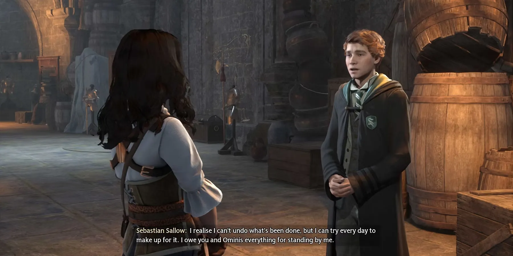 Слепой слизеринец с грустью расскажет о том, что Подземелье никогда не будет прежним без Себастьяна и что Анна опустошена, так как потеряла всю свою семью. Оминис закончит разговор, сказав, что он рад, что встретил главного героя, и поблагодарит их за это путешествие. Если игроки по какой-то случайности упустили шанс узнать непростительное проклятие в Hogwarts Legacy, они не получат возможности получить его, так как Себастьян больше не появится в игре.