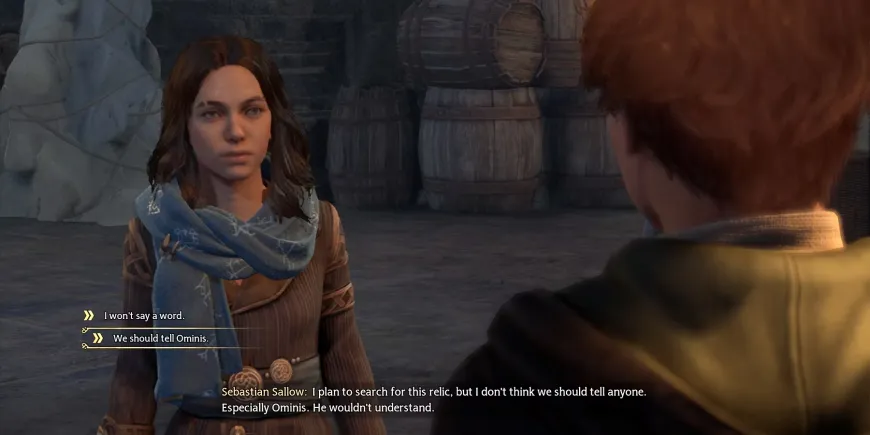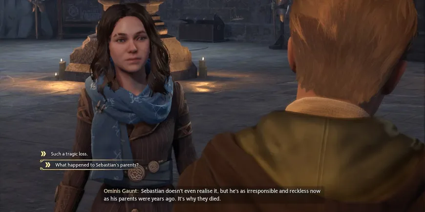 Оминис выражает, насколько Себастьян безответственен и безрассуден, какими были его родители, потому что в темную магию нельзя вмешиваться, особенно если информация поступает из книги заклинаний Салазара Слизеринца в Hogwarts Legacy. Здесь у протагонистов есть выбор спросить, как погибли его родители, позволив Оминису объяснить, что произошло. Разговор завершается тем, что игроки обещают не дать Себастьяну, насколько это возможно, связаться с темным искусством или книгой заклинаний.