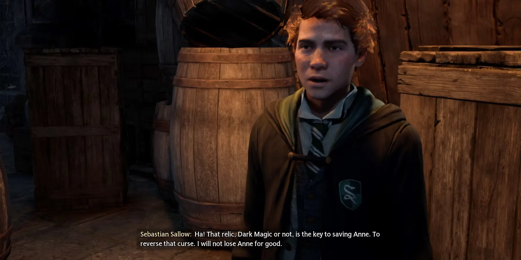Себастьян начинает разговор с вопроса о том, как закончились дела с его дядей, поскольку игроки вызвались поговорить с дядей. К сожалению, разговор не задался, поскольку Соломон не потерпит, чтобы Себастьян находился рядом с Анной или бродил по Фельдкрофту. Кроме того, дядя Себастьяна говорит, что использованию Темной магии нет оправдания, и угрожает поговорить с профессором Блэком в Hogwarts Legacy, если это еще раз повторится.