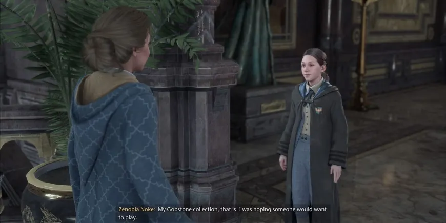 Чтобы начать побочное задание "Gobs of Gobstones", игрокам необходимо найти и поговорить с Зенобией Ноке в Башне защиты от темных искусств. Ее можно найти стоящей у лестницы рядом с соседним двором. Если игрокам трудно ее найти, просто послушайте, как она просит помощи у старшекурсника.
