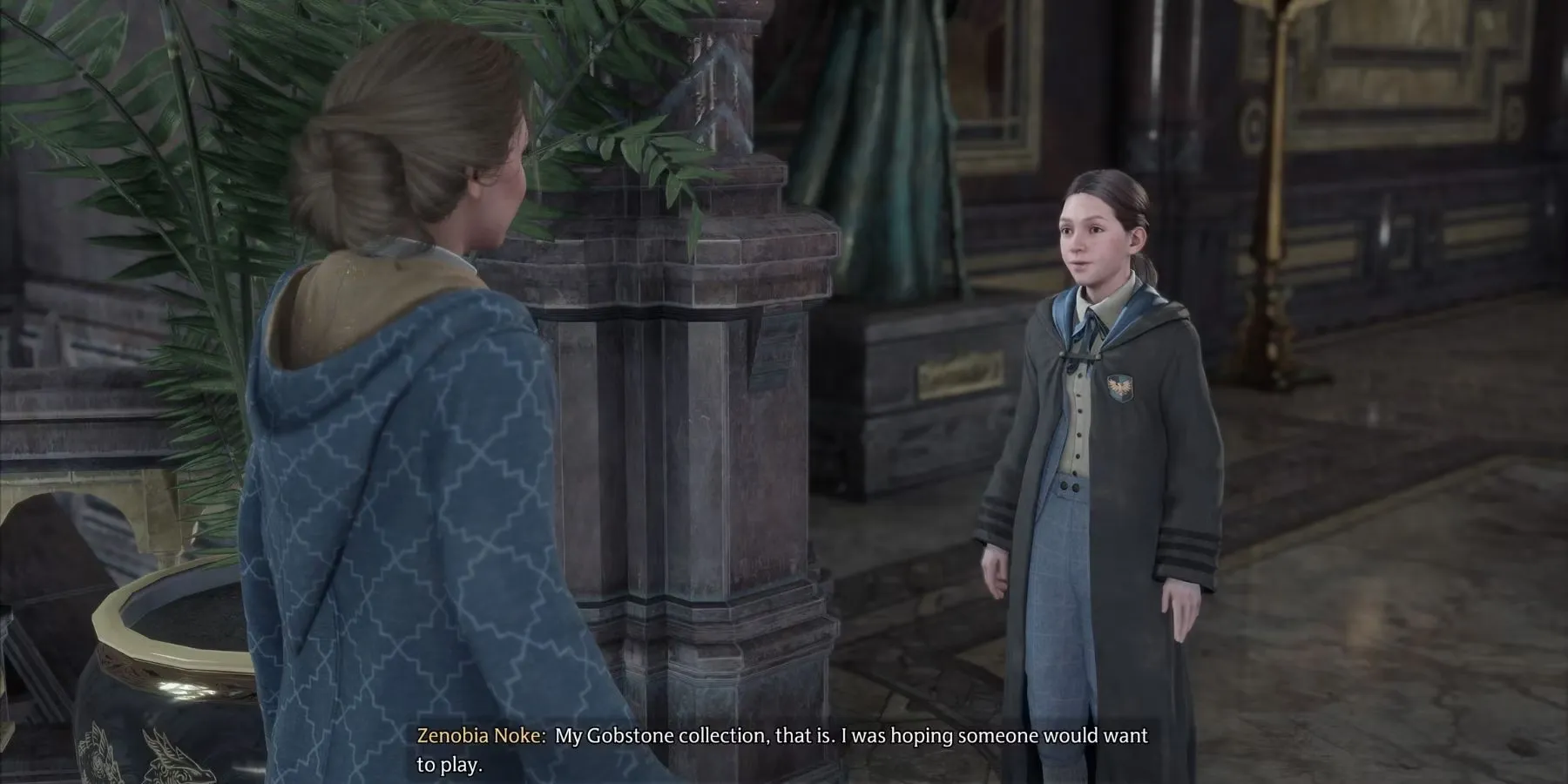 Чтобы начать побочное задание "Gobs of Gobstones", игрокам необходимо найти и поговорить с Зенобией Ноке в Башне защиты от темных искусств. Ее можно найти стоящей у лестницы рядом с соседним двором. Если игрокам трудно ее найти, просто послушайте, как она просит помощи у старшекурсника.