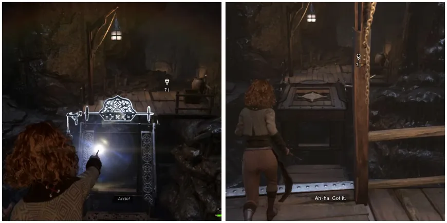 С этого момента игроки могут либо продолжить движение к цели квеста напрямую, либо отклониться от нее, чтобы разграбить секретный проход и получить предмет в Hogwarts Legacy. Открыв спрятанный сундук, игроки должны вернуться к платформе и наложить на нее заклинание Левиосо. Это заставит платформу левитировать и сделает ее пригодной для подъема.
