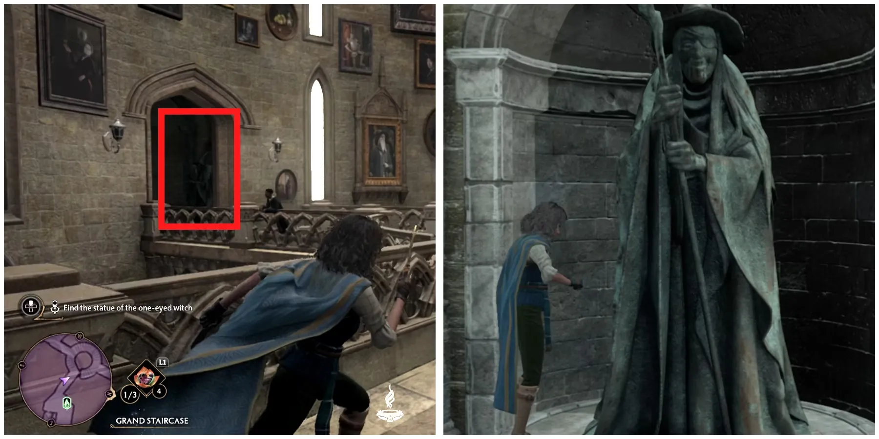 - Найти статую одноглазой ведьмы на Большой лестнице.