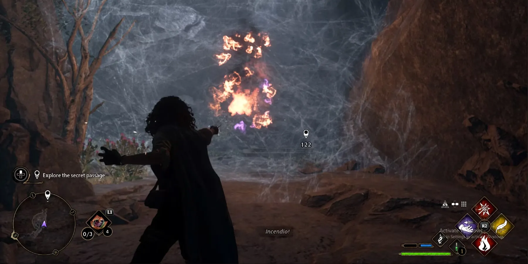 - Наложите заклинание Инсендио, чтобы сжечь паутину, преграждающую путь.