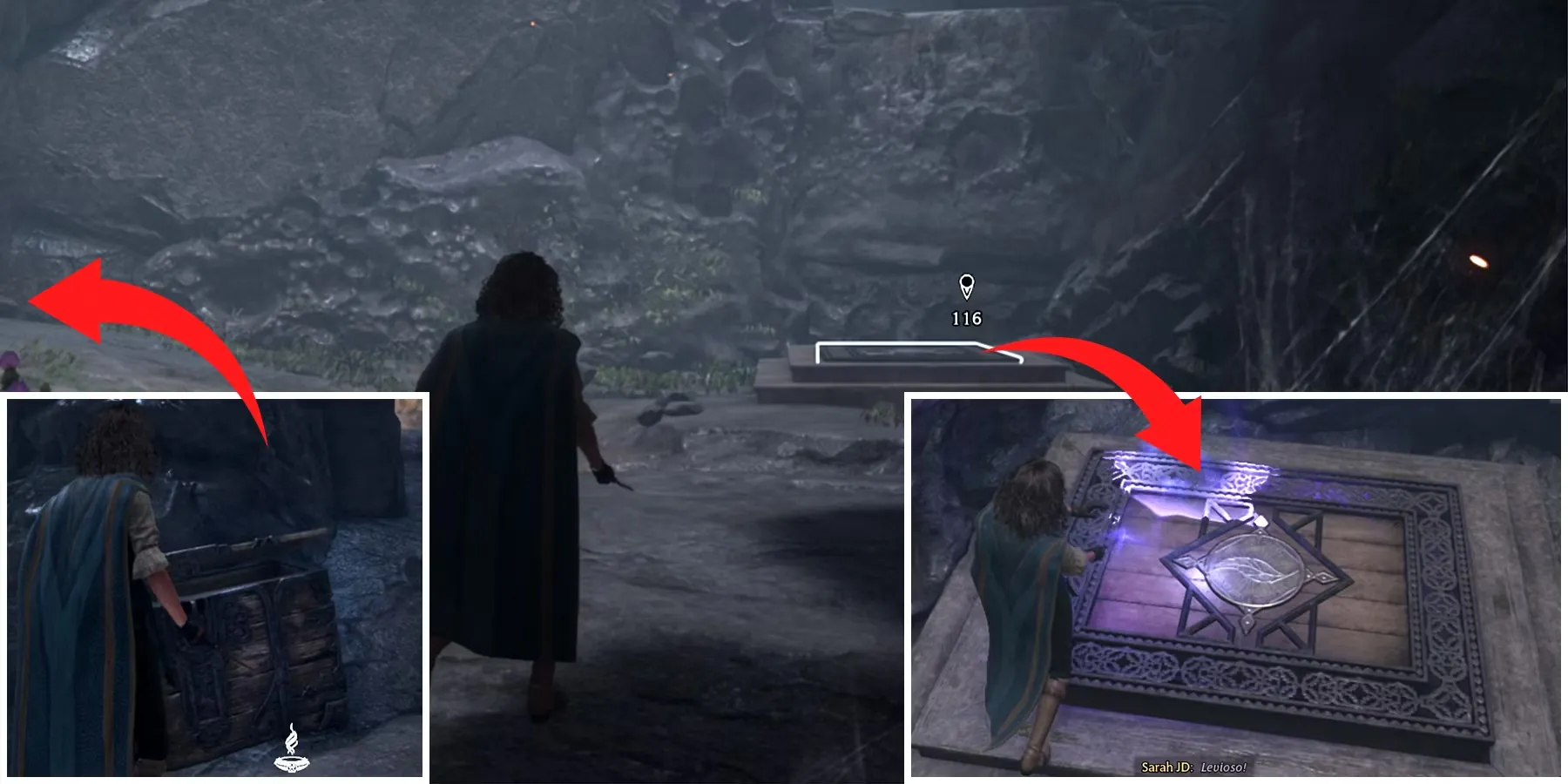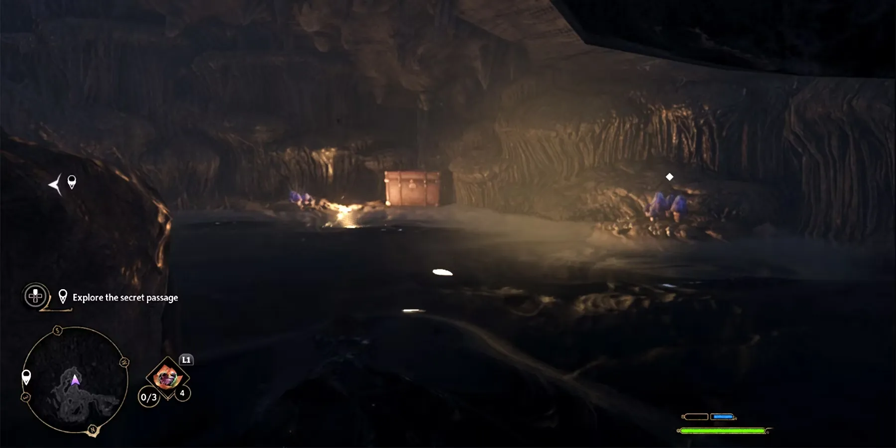 С этого момента игроки могут либо продолжить движение к цели квеста напрямую, либо отклониться от нее, чтобы разграбить секретный проход и получить предмет в Hogwarts Legacy. Открыв спрятанный сундук, игроки должны вернуться к платформе и наложить на нее заклинание Левиосо. Это заставит платформу левитировать и сделает ее пригодной для подъема.