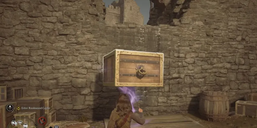 Чтобы попасть в замок Руквуда, который находится в регионе Фельдкрофт, игроки должны сначала победить врагов, а затем использовать Revelio для поиска ящика. Используйте Wingardium Leviosa, чтобы протащить ящик под разрушенной стеной, и примените Levioso, чтобы заставить его левитировать. Прыгните на него, чтобы получить доступ на территорию замка.