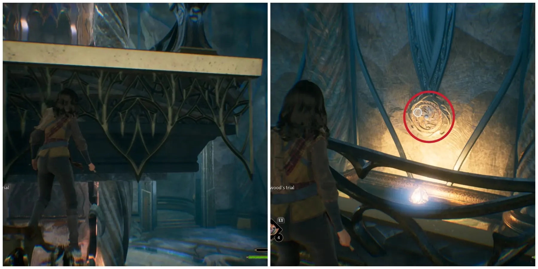 Чтобы попасть в замок Руквуда, который находится в регионе Фельдкрофт, игроки должны сначала победить врагов, а затем использовать Revelio для поиска ящика. Используйте Wingardium Leviosa, чтобы протащить ящик под разрушенной стеной, и примените Levioso, чтобы заставить его левитировать. Прыгните на него, чтобы получить доступ на территорию замка.