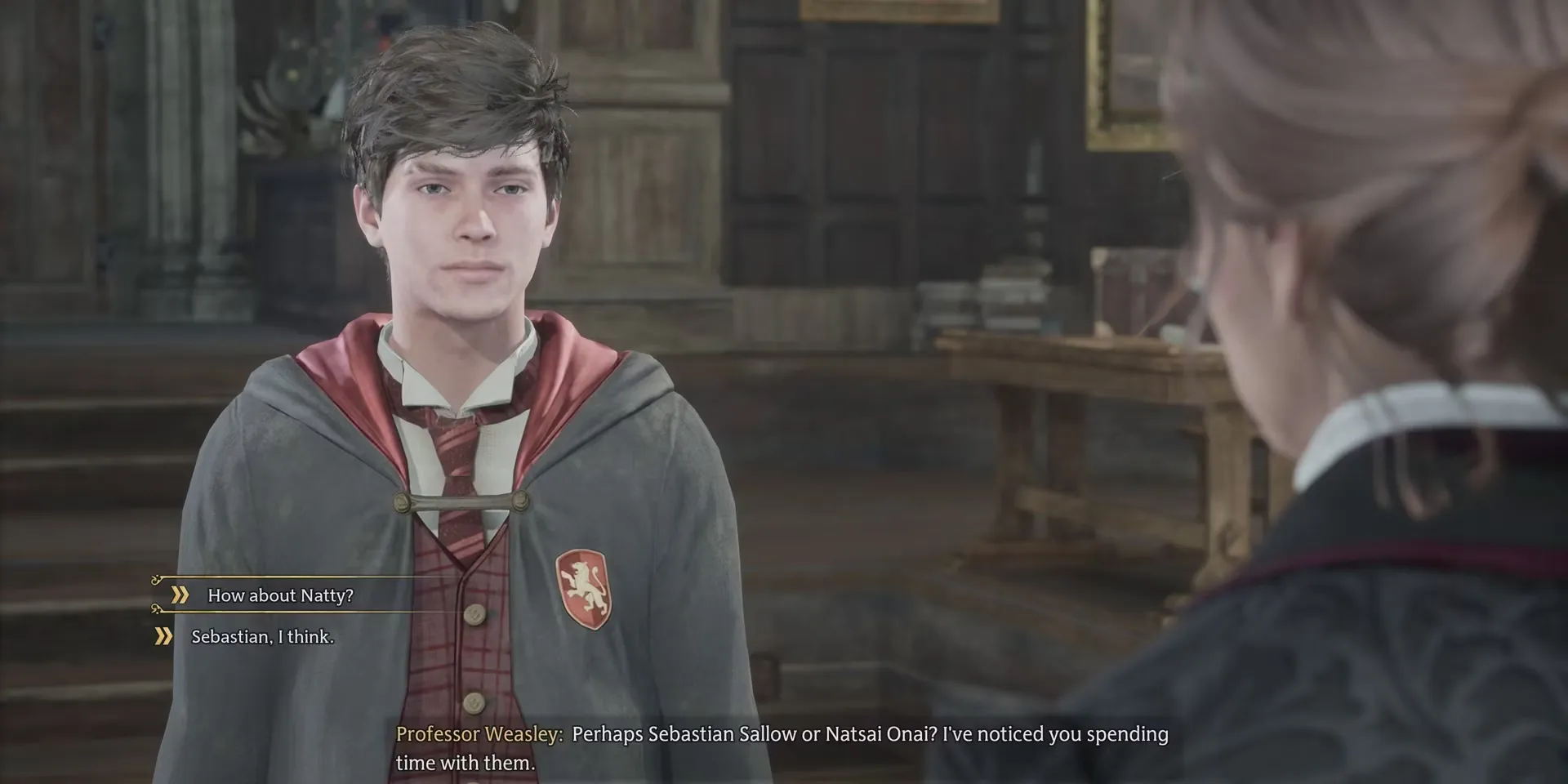 После прохождения первых двух уроков игрокам Hogwarts Legacy нужно будет отправиться в класс трансфигурации, чтобы встретиться с профессором Уизли. Там она снова расскажет им об их приключении с профессором Фигом, а затем попросит выбрать партнера для поездки в волшебную деревню Хогсмид. Здесь есть только два варианта: Натсай "Нэтти" Онай и Себастьян Сэллоу.