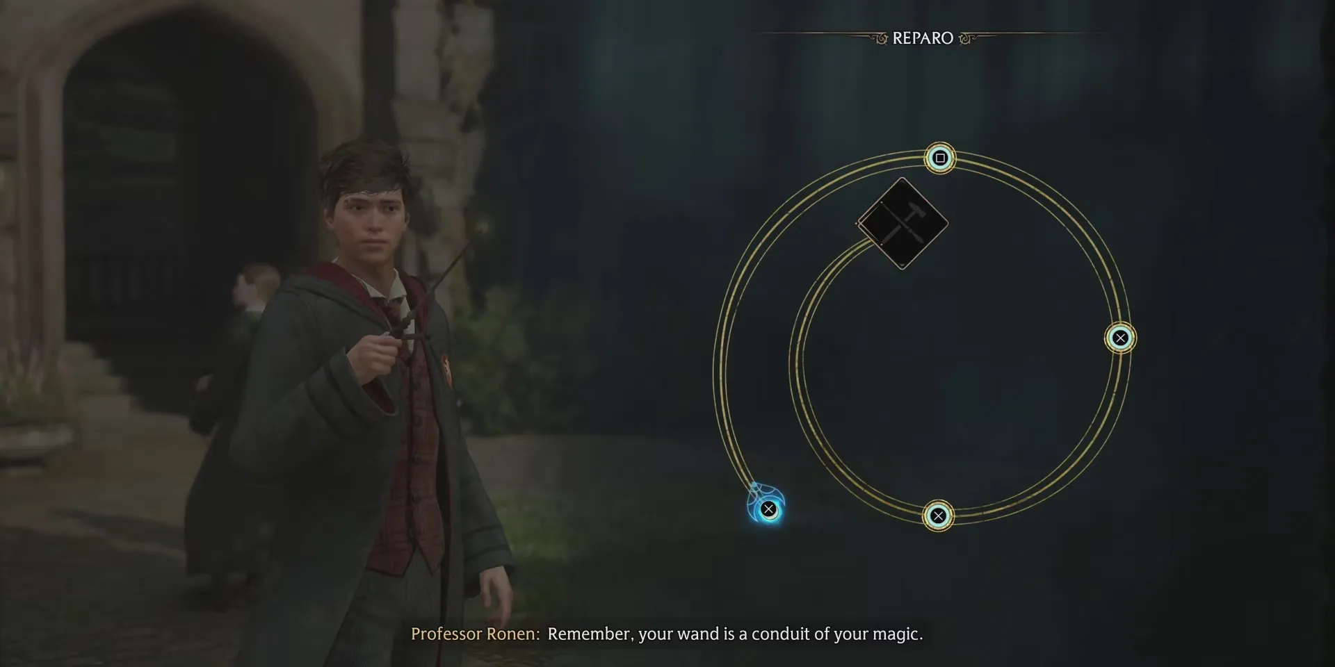 После того как игроки найдут две страницы и вернут их профессору, они выучат заклинание Reparo и должны будут использовать его, чтобы собрать разбитую статую обратно. После этого настанет время встретиться с человеком, которого игроки выбрали ранее, возле входа в Хогвартс. По пути туда они пройдут через Центральный зал, где смогут выполнить побочные задания "Like a Moth to a Frame" и "Flying off the Shelves". Впрочем, они совершенно необязательны, поэтому игроки, которым не терпится попасть в Хогсмид, могут сразу же отправиться к Нэтти или Себастьяну, как только будут готовы отправиться в путь.