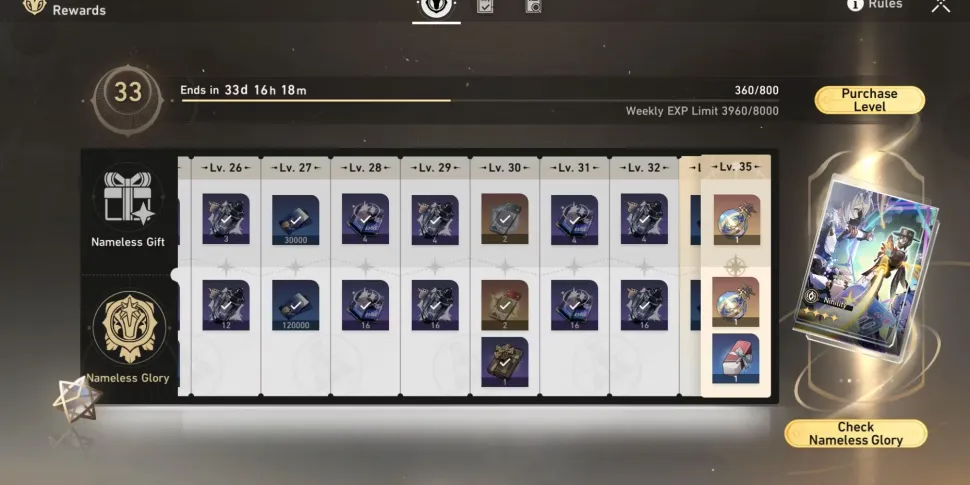 В Honkai Star: Rail у игроков есть возможность приобрести Nameless Glory, которая является платной версией Nameless Honor. Эта версия предлагает дополнительные награды, такие как эксклюзивные световые конусы, материалы для возвышения персонажа и более ценные ресурсы, такие как специальные пропуски Star Rail. Однако платная версия не является необходимой для того, чтобы в полной мере насладиться игрой или завершить Nameless Honor.