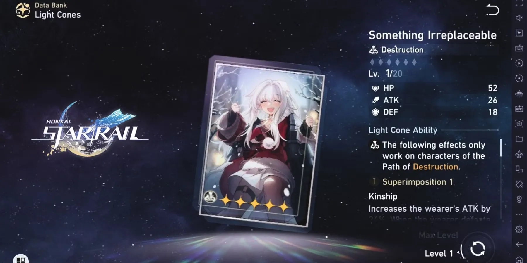 Хотя "Something Irreplaceable" - это абсолютное чудовище светового конуса, получить пятизвездочный световой конус может быть непросто. Если у вас его нет, игрокам следует выбрать другой световой конус, усиливающий атаку Клары.