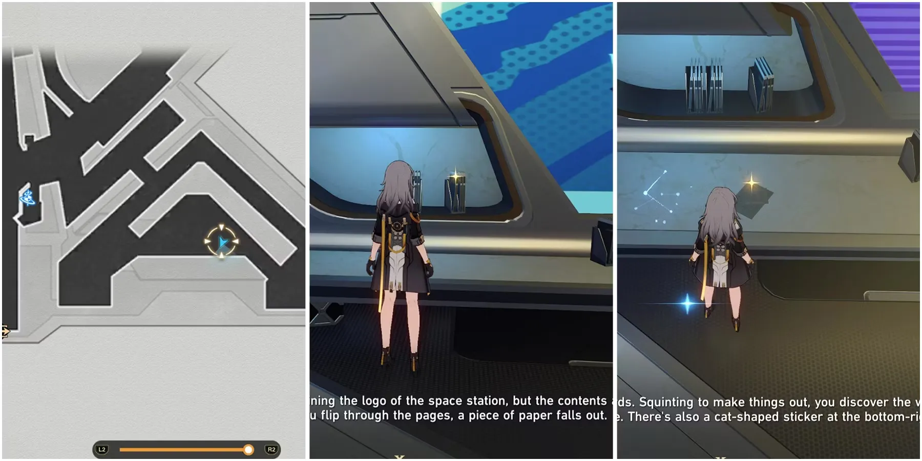 Исследуйте сияющую полку к юго-востоку от центральной точки прохода на космической станции Герта. После этого на столе под ней появится страница. Соберите ее, а затем телепортируйтесь на космический якорь Водной зоны.