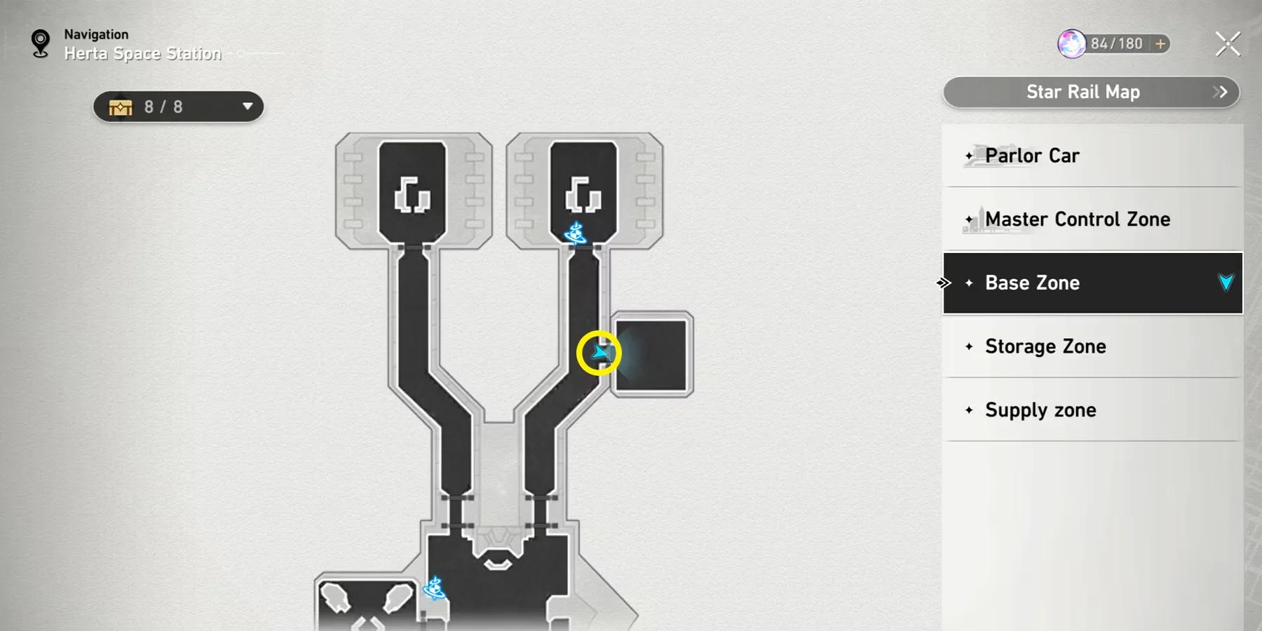 Исследуйте мусорные баки в зоне контроля мастера, чтобы получить 20 гертариумов и Похвалу высокой морали. Идите на северо-восток от Центрального прохода, чтобы найти первый набор мусорных баков (A) в Honkai: Star Rail.