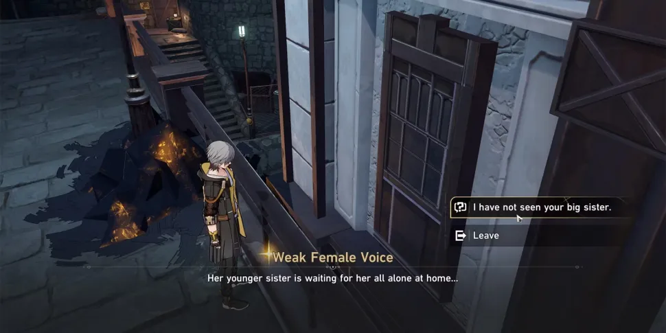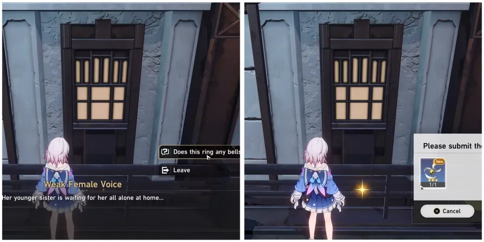 Отсюда вернитесь туда, где находился Warp Trotter в Rivet Town, чтобы найти сестру со слабым женским голосом в Honkai: Star Rail. Отдайте ей поврежденную музыкальную шкатулку, чтобы завершить скрытый квест.