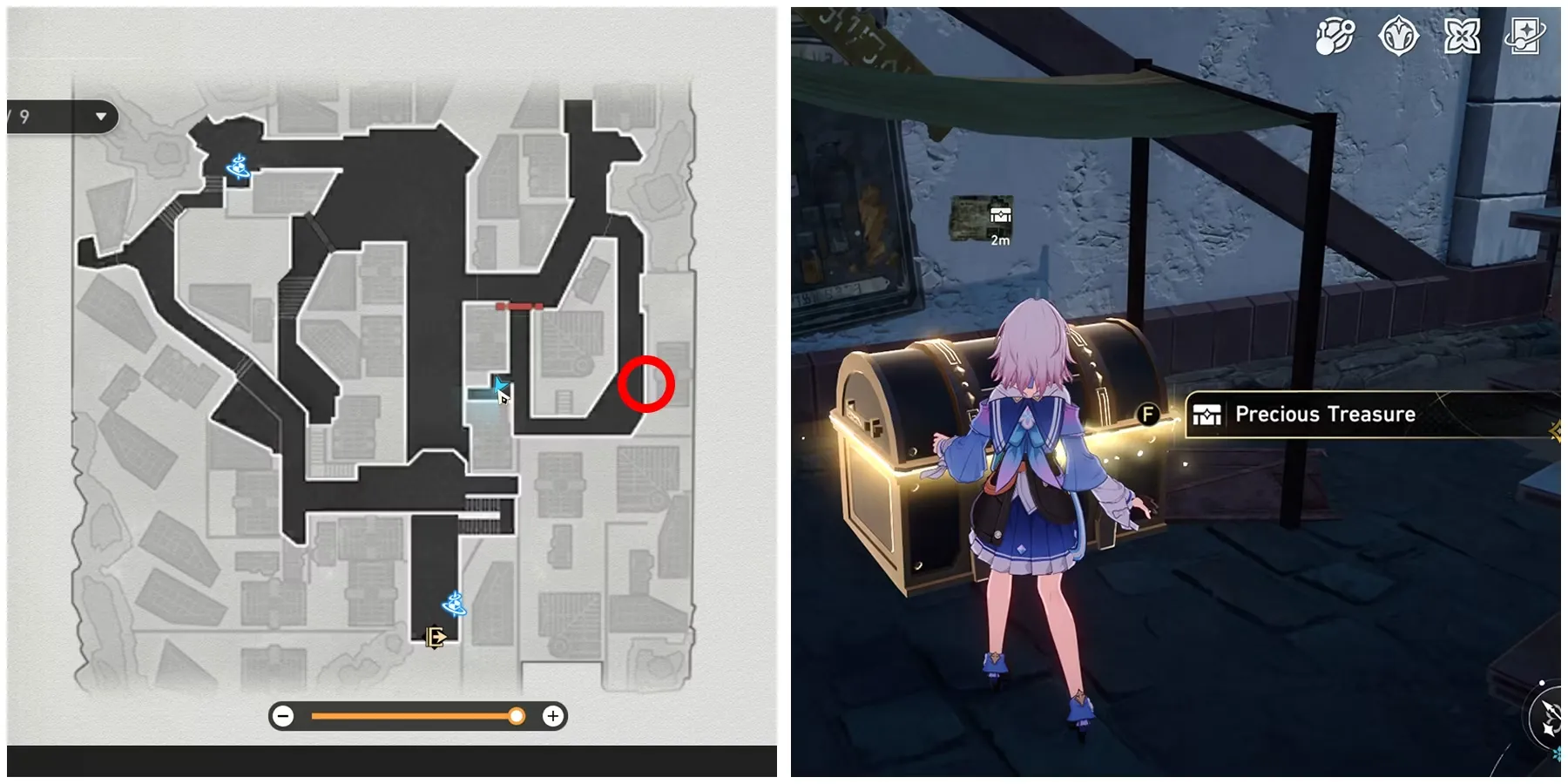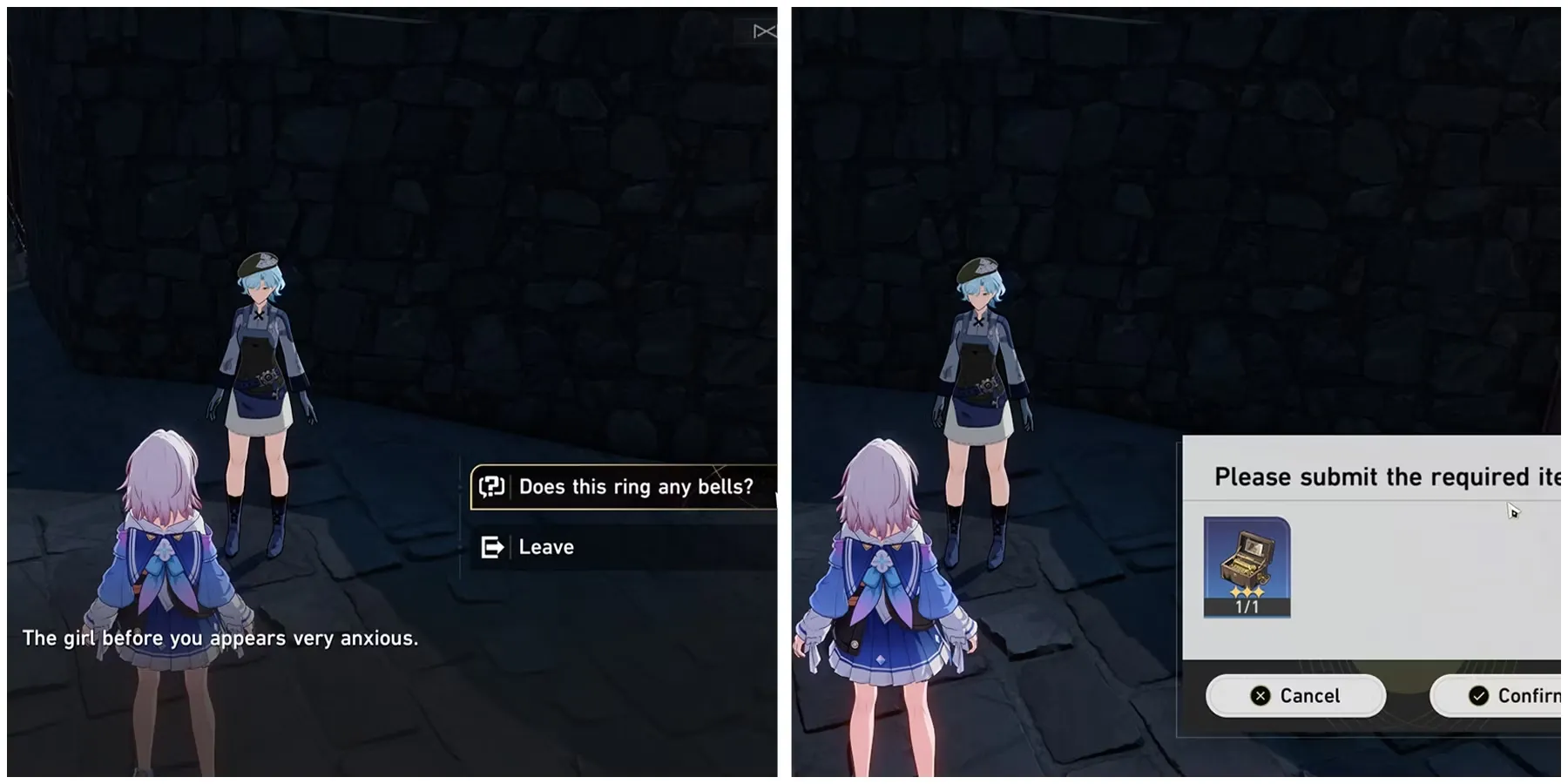 Отсюда вернитесь туда, где находился Warp Trotter в Rivet Town, чтобы найти сестру со слабым женским голосом в Honkai: Star Rail. Отдайте ей поврежденную музыкальную шкатулку, чтобы завершить скрытый квест.