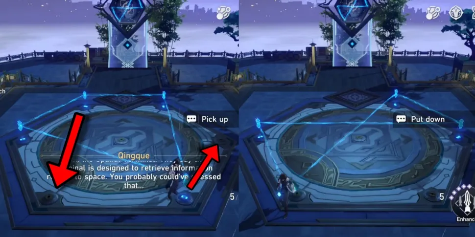 Чтобы перезапустить пространственный терминал в квесте Honkai: Star Rail Omniscient Inquiry Of Arcana, игрокам нужно переместить левый верхний объект в левый нижний, а правый нижний в правый.