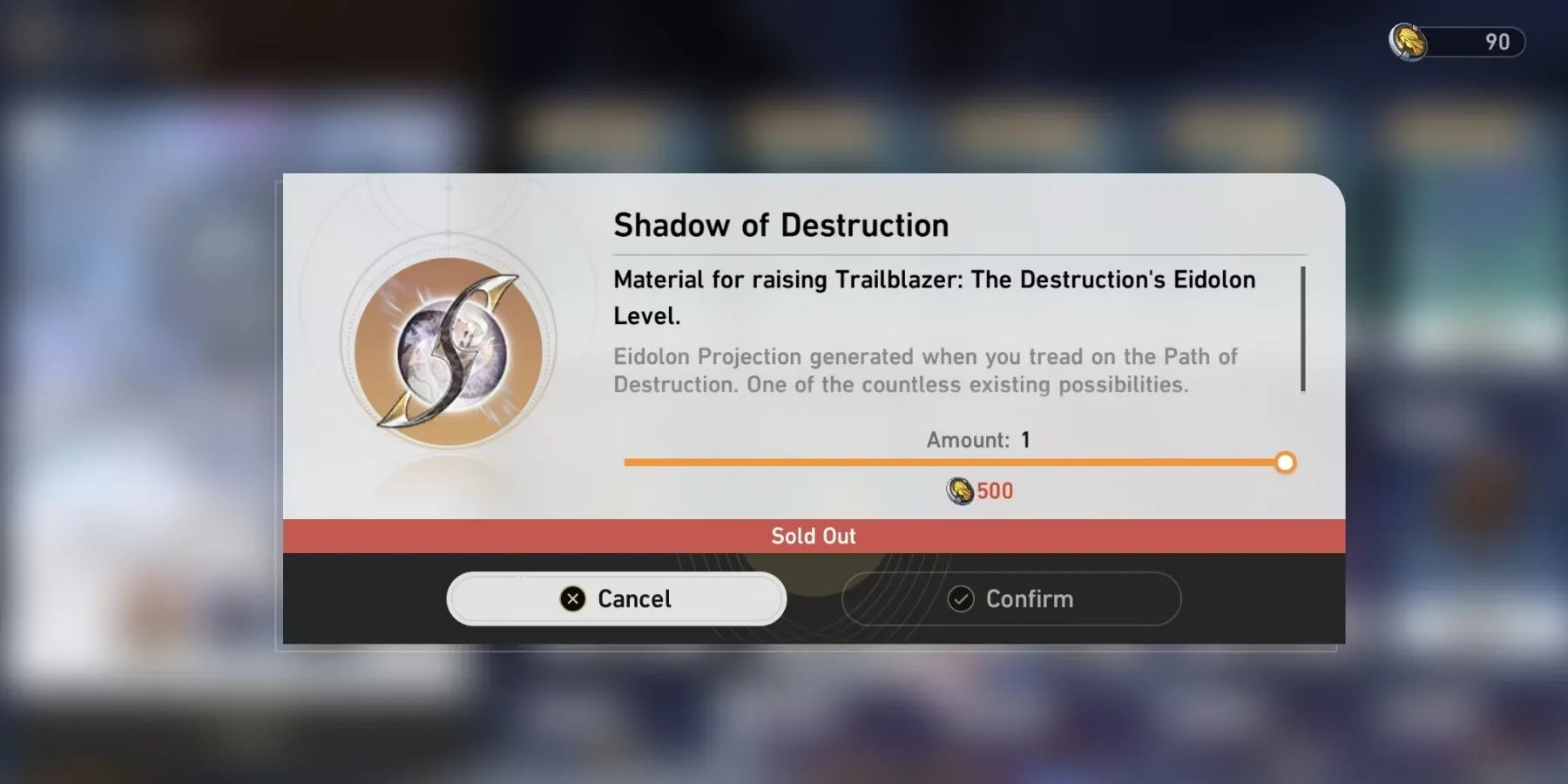 Третью Тень Разрушения можно приобрести у Вэнь Шици на космической станции Герта за 500 гертареумов. Чтобы получить эту валюту, игроки могут либо бегать по окрестностям, открывая сундуки, либо завершить некоторые миссии, либо обнаружить уникальные скрытые задания, как в миссии Origami Crane в Honkai: Star Rail.