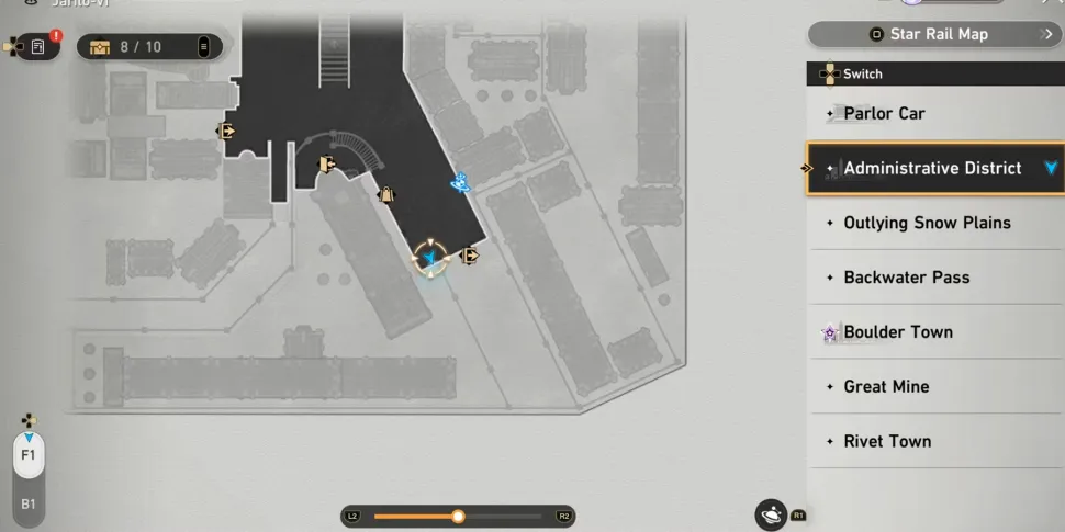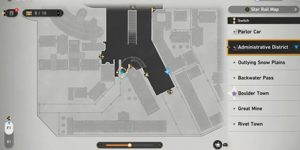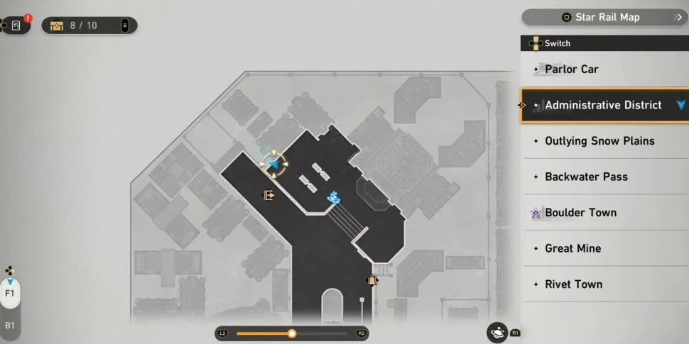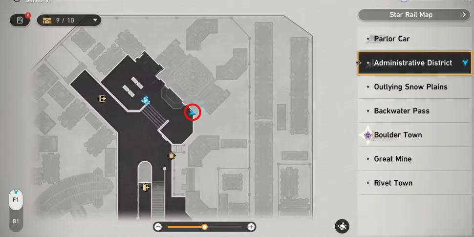 Пройдя на север от входа в Backwater Pass, можно разграбить сундук в небольшом углу слева. Хотя в Honkai: Star Rail в административном районе нет Рысака, девятое основное сокровище - это последний сундук, который игроки найдут на первом этаже района. Что касается десятого сокровища, то оно находится на нижнем этаже.