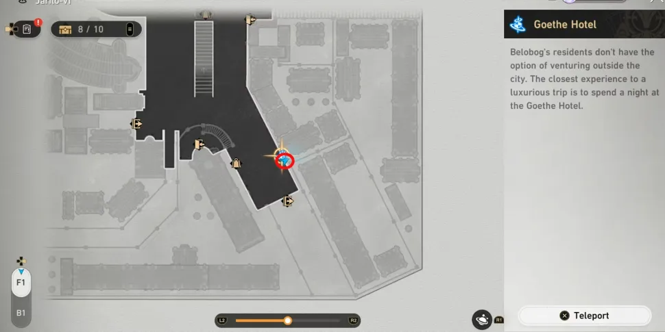 Теперь отправляйтесь в отель Goethe Hotel Space Anchor, чтобы найти Основное сокровище в Honkai: Star Rail непосредственно рядом с путевой точкой.