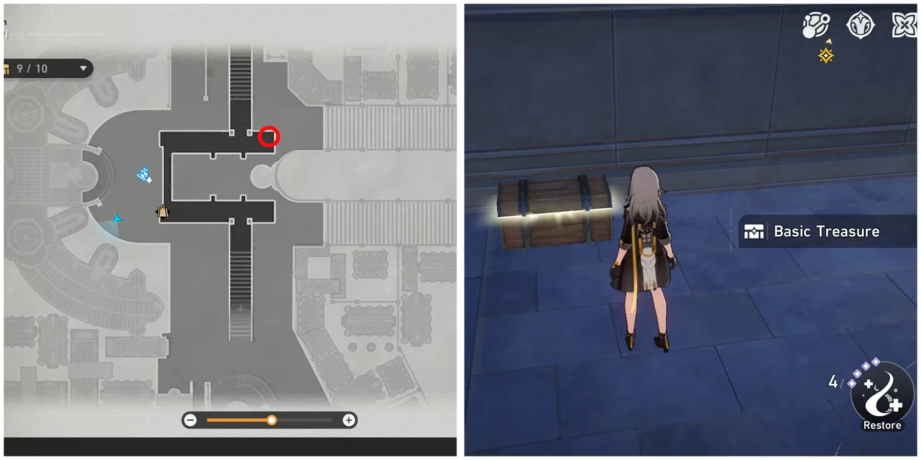 Пройдя на север от входа в Backwater Pass, можно разграбить сундук в небольшом углу слева. Хотя в Honkai: Star Rail в административном районе нет Рысака, девятое основное сокровище - это последний сундук, который игроки найдут на первом этаже района. Что касается десятого сокровища, то оно находится на нижнем этаже.