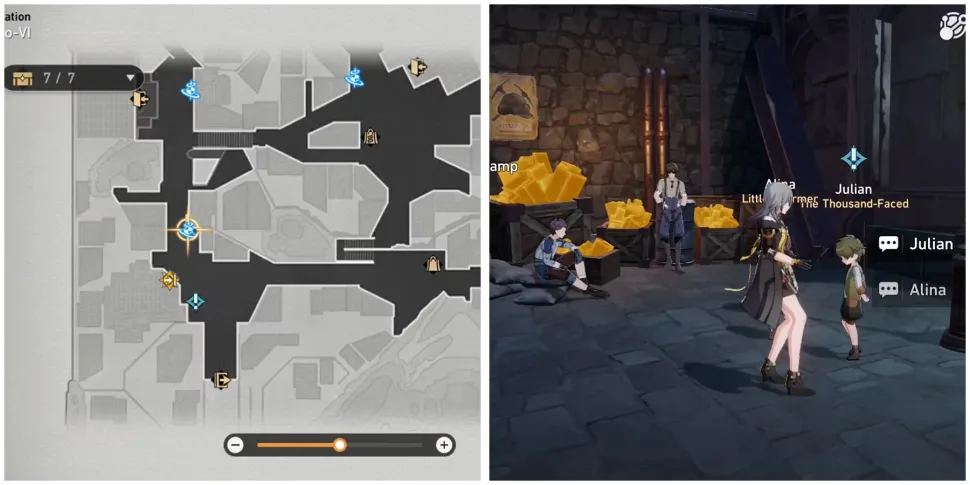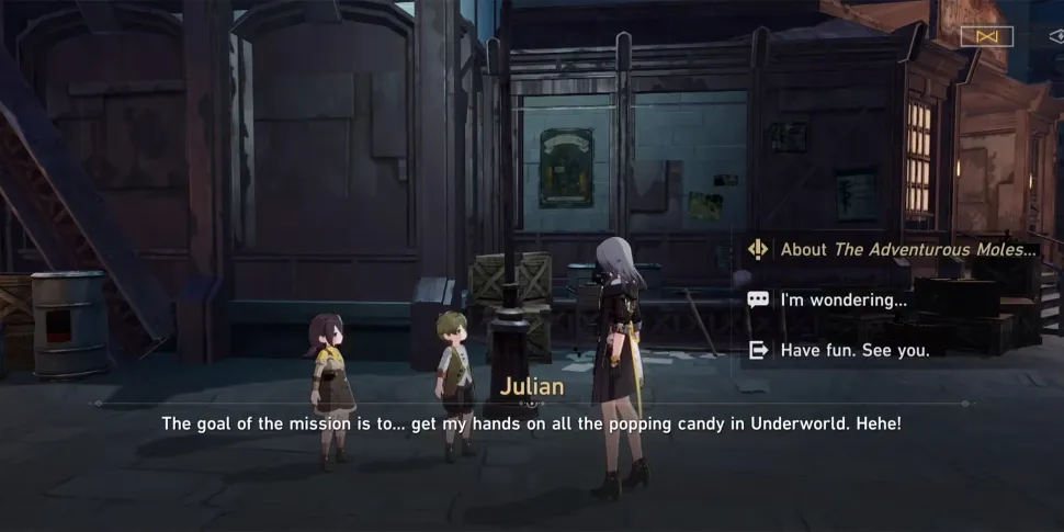 Как только необходимые условия будут выполнены, отправляйтесь в клинику Наташи "Космический якорь" и идите на юго-восток, чтобы найти Джулиана. Поговорите с мальчиком, чтобы вызвать квест "Авантюрные кроты" в Honkai: Star Rail.
