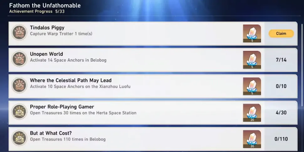 Впервые поймав Warp Trotter в Honkai: Star Rail, игроки получат достижение Tindalos Piggy, которое дает пять звездных нефритов.