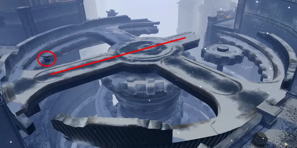 Телепортируйтесь на Древнее поле битвы: Frontline и идите на запад, затем поднимитесь по северной лестнице, чтобы найти головоломку Magflow Link. Почините дрон и следуйте по его пути, который приведет ко второму щедрому сокровищу.