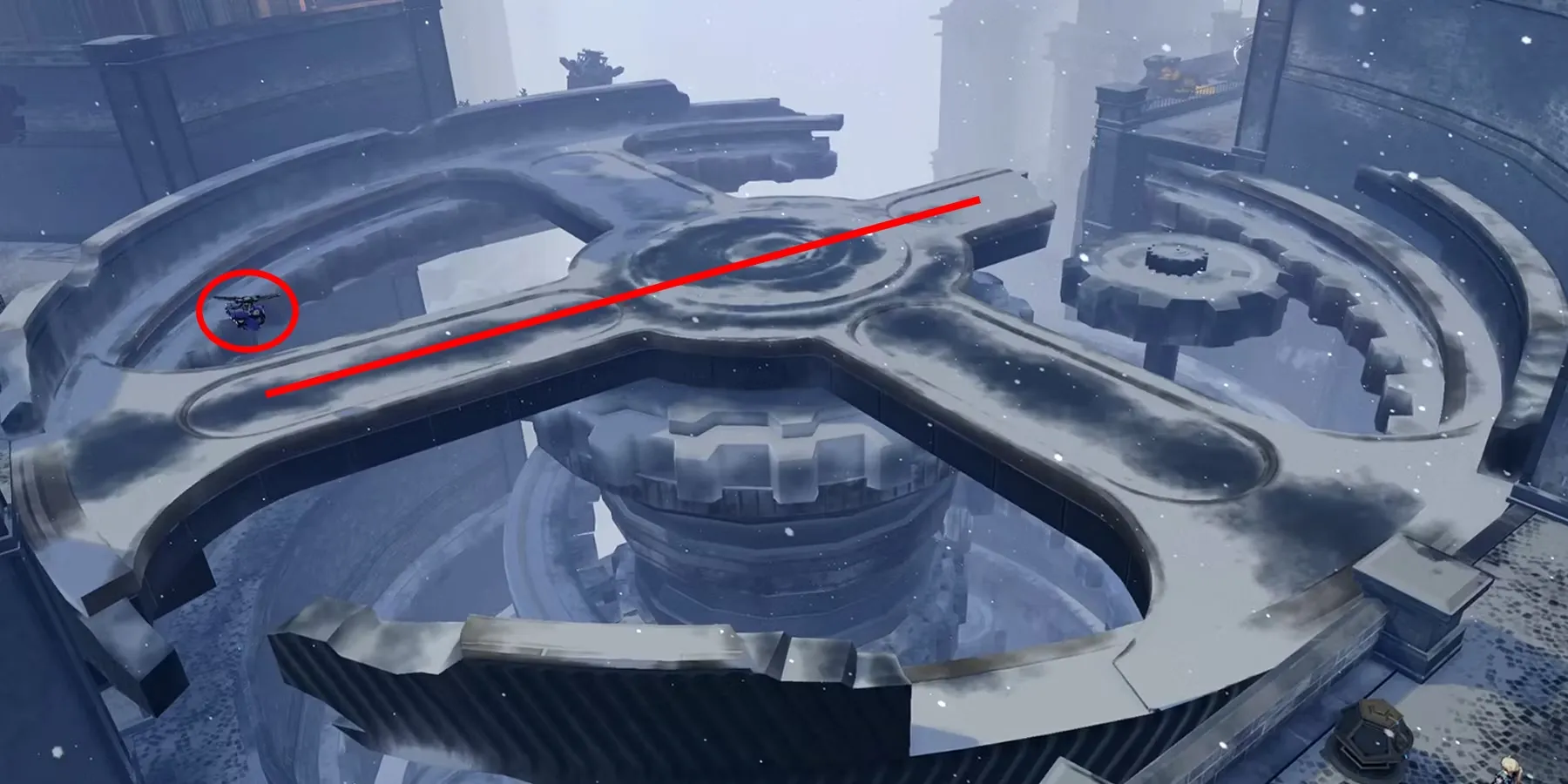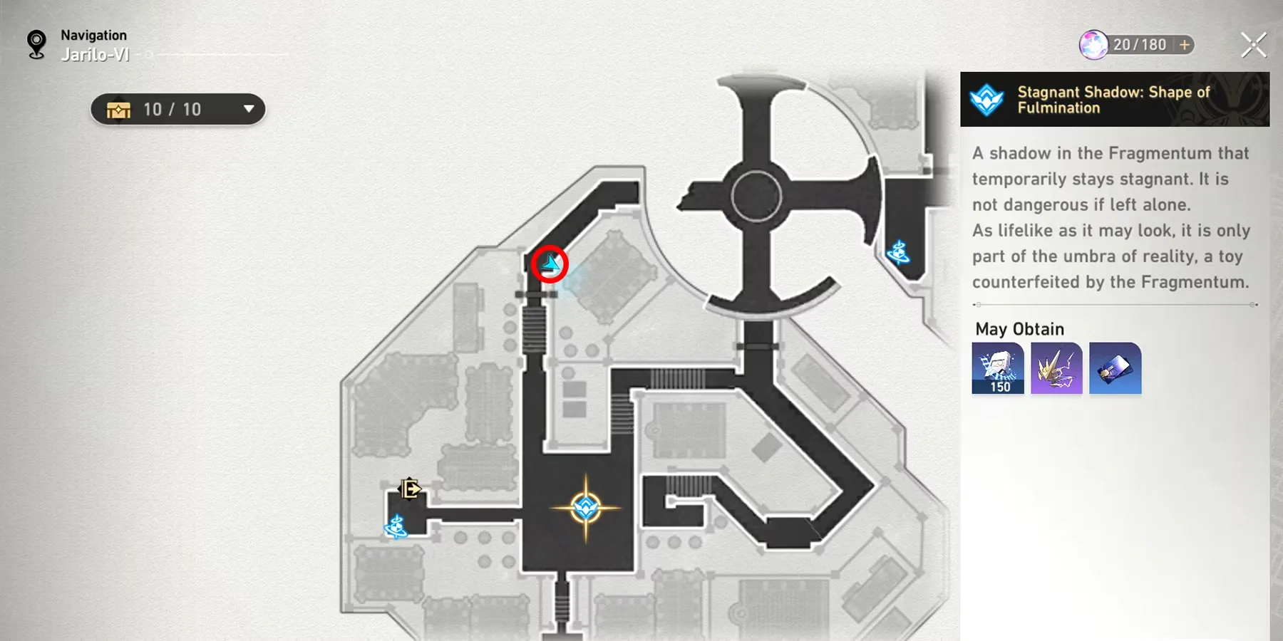 Из предыдущего места продолжайте идти по северному пути, затем поверните немного на восток, чтобы открыть шестое базовое сокровище рядом с лестницей. В качестве альтернативы, если игроки достигли 30-го уровня, они могут телепортироваться в Stagnant Shadow: Shape of Fulmination в Honkai: Star Rail.