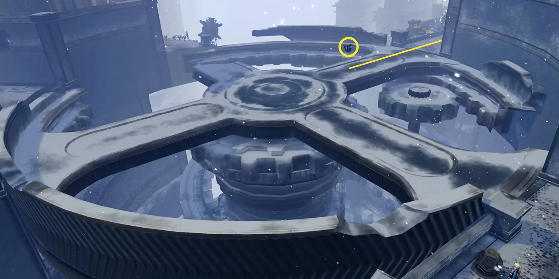 Телепортируйтесь на Древнее поле битвы: Frontline и идите на запад, затем поднимитесь по северной лестнице, чтобы найти головоломку Magflow Link. Почините дрон и следуйте по его пути, который приведет ко второму щедрому сокровищу.