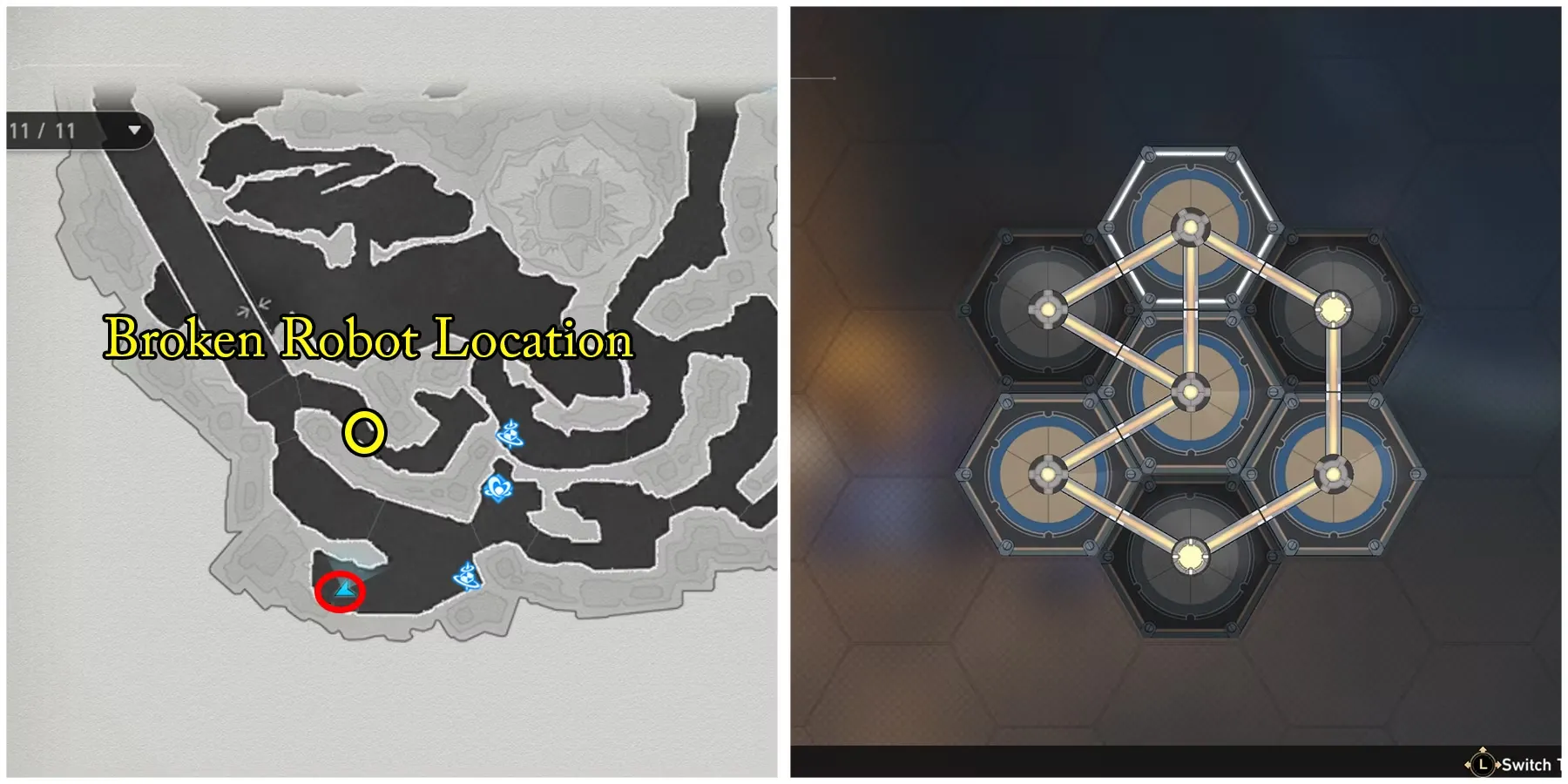 Направляйтесь на северо-запад от путевой точки "Главный шахтерский ствол", затем войдите в узкое пространство на востоке и найдите сломанного робота. Почините его, решив головоломку, а затем следуйте за ним, чтобы получить щедрый сундук.