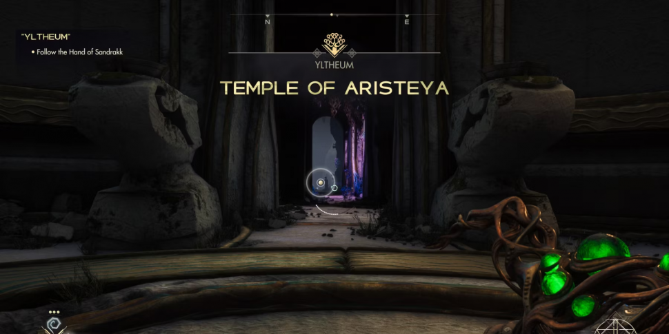 Джак попадет в Храм Аристеи в главе 3, вскоре после того, как его самовольно переправят на Илтеум. Чтобы добраться до входа, нужно прыгнуть в дыру, проделанную рукой Сандракка во время сцены, которая происходит непосредственно перед началом выполнения задания "Следовать за рукой Сандракка". Внизу, двигаясь на северо-восток, вы попадете на открытую площадку, на которой находится первая дверь-головоломка.