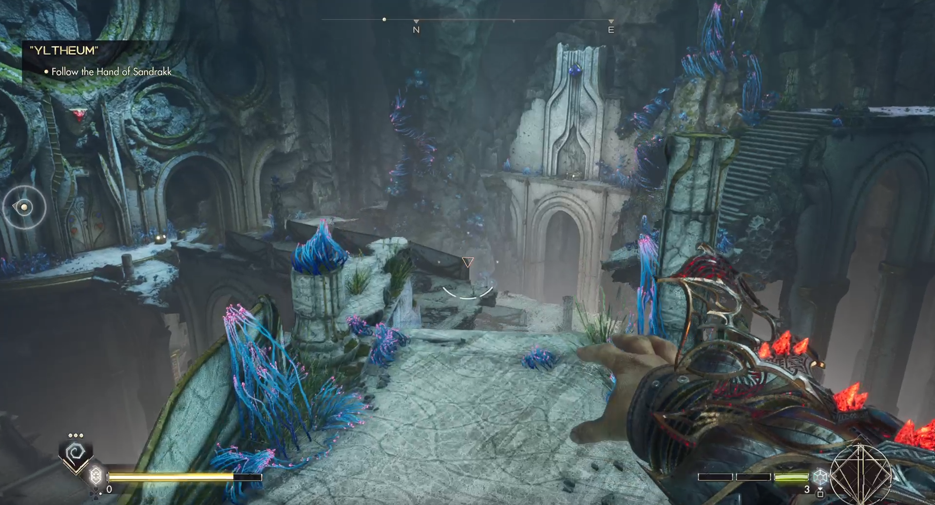 - Чтобы добраться до последнего красного кристалла, игроки должны направиться на юг и перепрыгнуть через пролом к лестнице на востоке. После этого красный кристалл можно будет увидеть прямо над заблокированным арочным проемом.