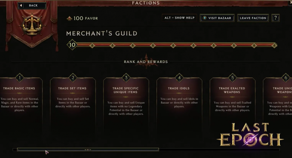 Last Epoch: Как продавать и покупать предметы через гильдию торговцев