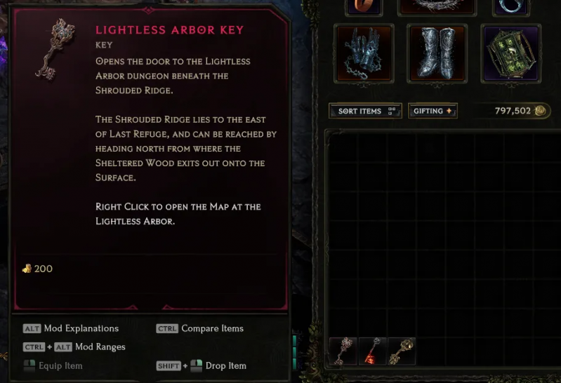 - У вас должны быть необходимые ключи от подземелий Lightless Arbor, Soulfire Bastion и Temporal Sanctum, которые можно получить, пройдя Monoliths of Fate, с требованиями к уровню подземелья 22, 45 и 55 соответственно.