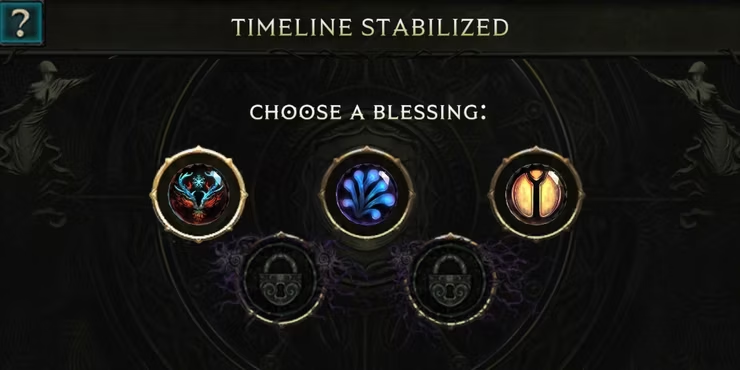 Победив босса, вы также сможете получить Благословение из конкретной временной шкалы. Благословение - это пассивный бонус, который действует на вашего персонажа неограниченное время, подобно дереву пассивок персонажа. Случайным образом вам будет предложено 3-5 благословений в зависимости от значения Коррупции вашей временной линии (объясняется далее в руководстве). На вас может повлиять только одно благословение в каждой временной линии, максимум десять благословений.