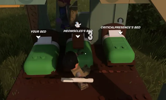 - Проверьте парящие ярлыки над кроватями, чтобы узнать, кто где спит.